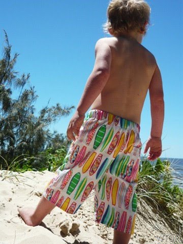 Bondville favourite Wild Things of Noosa from the Sunshine Coast has some great new handmade pieces for boys and girls for the summer.These longboard shorts for boys 1-4 years are just the right length and printed with cool-as-cucumber surfboards. The pocket on the back is perfect for keeping a matchbox car safe, or other special treasure.